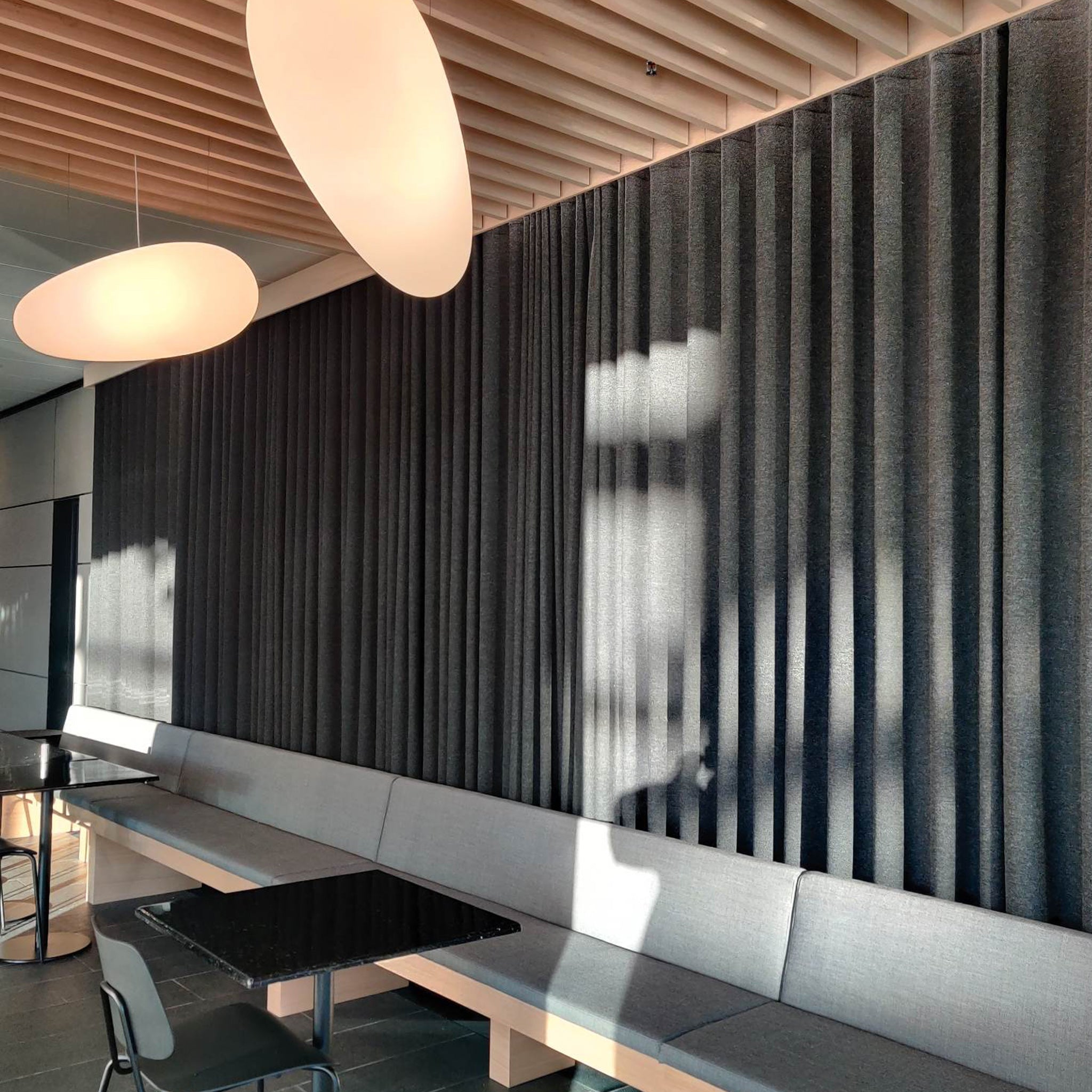 "Tekstiler er med til at bløde det hele lidt op. De skaber en hyggelig og varm atmosfære, hvor folk kan føle sig inspireret og godt tilpas. Og så skal man heller ikke glemme, at tekstil er godt for både akustikken og varmeregningen," konstaterer hun.
